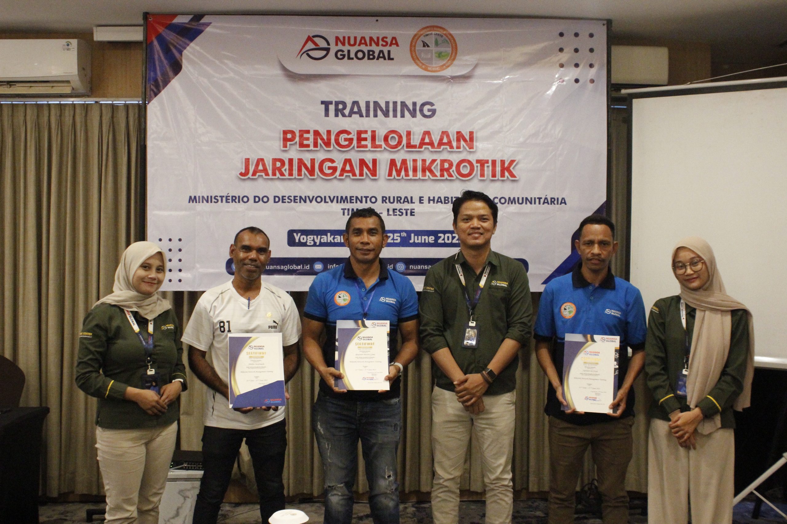 Yogyakarta, Nuansa Global – Nuansa Global kembali melaksanakan program pelatihan profesional untuk klien internasional. Pada 23–25 Juni 2025, diselenggarakan Training Pengelolaan Jaringan Mikrotik bagi Ministério do Desenvolvimento Rural e Habitação Comunitária Timor-Leste di Luxury Hotel Malioboro, Yogyakarta. Pelatihan ini berlangsung di Ruang Lily I dan diikuti oleh 3 peserta terpilih. Pelatihan ini dirancang untuk memberikan […]