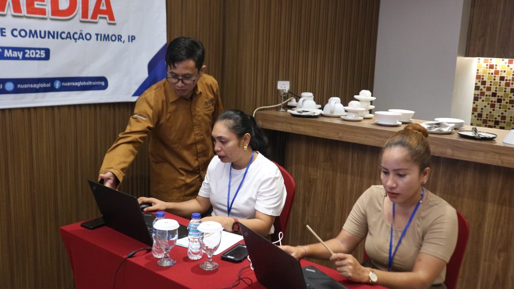 Kupang, Nuansa Global – Nuansa Global kembali menggelar pelatihan profesional bagi klien internasional. Pada 05–09 Mei 2025, diselenggarakan Training Multimedia bagi Tecnologia da Informação e Comunicação TIMOR, IP (TIC Timor-Leste) di Hotel Swiss-Belcourt, Kupang. Pelatihan berlangsung di Meeting Room 118 dan diikuti oleh 2 peserta terpilih.