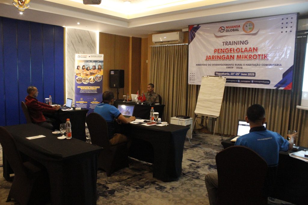 Yogyakarta, Nuansa Global – Nuansa Global kembali melaksanakan program pelatihan profesional untuk klien internasional. Pada 23–25 Juni 2025, diselenggarakan Training Pengelolaan Jaringan Mikrotik bagi Ministério do Desenvolvimento Rural e Habitação Comunitária Timor-Leste di Luxury Hotel Malioboro, Yogyakarta. Pelatihan ini berlangsung di Ruang Lily I dan diikuti oleh 3 peserta terpilih.