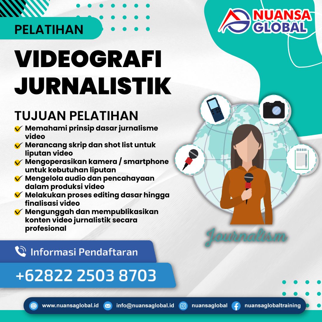 Pelatihan Videografi Jurnalistik adalah program pelatihan yang dirancang untuk membekali peserta dengan keterampilan teknis dan kreatif dalam produksi video berita yang informatif, faktual, dan menarik. Pelatihan ini akan mengupas tuntas proses produksi video jurnalistik mulai dari pra-produksi, pengambilan gambar di lapangan, teknik wawancara, editing, hingga publikasi video di berbagai platform media massa maupun digital.