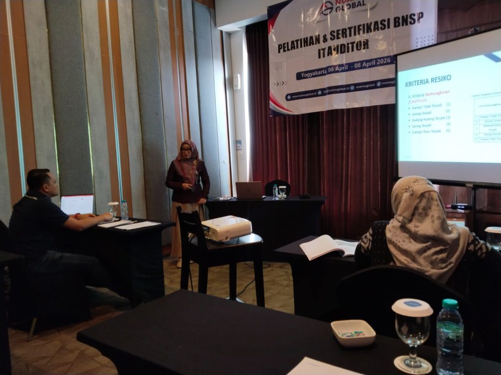 Kegiatan ini berlangsung di Hotel Lamora Jogja dan diikuti oleh 2 peserta yang merupakan tenaga profesional di bidang IT. Pelatihan ini bertujuan untuk meningkatkan kemampuan peserta dalam melakukan audit sistem informasi sesuai dengan standar kompetensi yang telah ditetapkan oleh Badan Nasional Sertifikasi Profesi (BNSP).